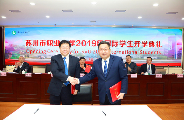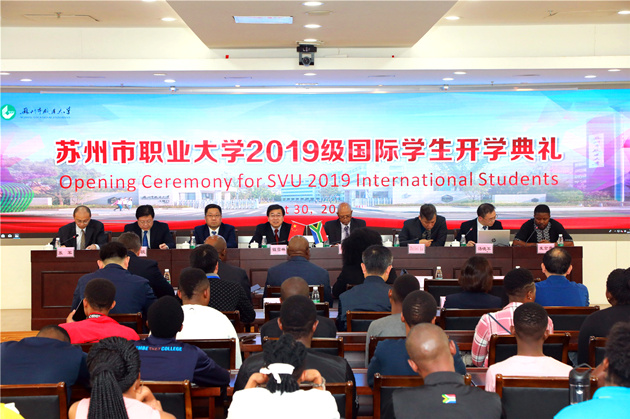 On October 30th, Suzhou Vocational University held the opening ceremony of the 2019 international students. George Wyne Adams, CEO of Merseta (South Africa), Dr. Lu Zhilei, director of CCIEEC (South Africa), Yang Jun, director of Human Resources Department of Hengtong Group Co., Ltd., Niu Xuelin, secretary of the CPC SVU Committee, Cao Yumin, president of SVU, and the leaders from related university departments, teacher representatives and all 2019 international students attended the ceremony, which was hosted by Zhang Jun, director of the Foreign Affairs Office.